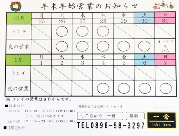 年末年始営業のお知らせ
