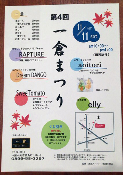 2017年11月11日(土)『第4回一倉まつり』《10:00〜16:00 雨天決行》
